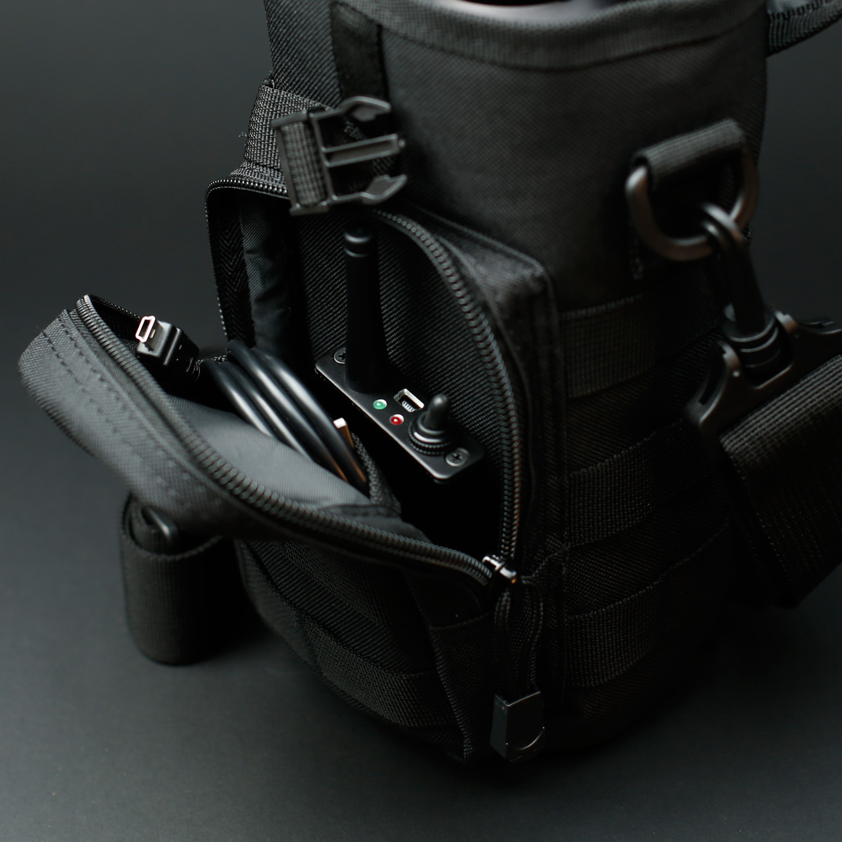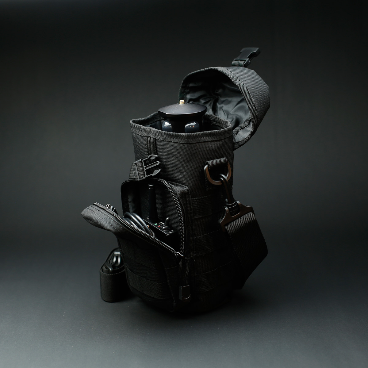 Umhängetasche mit Schultergurt und Molle Befestigungssystem.